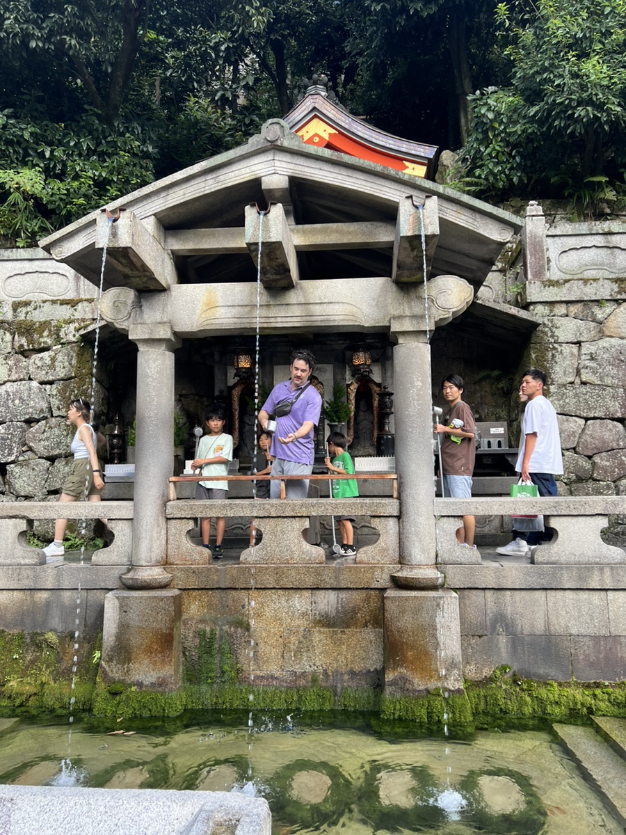 청수사의 경우, 계절별로 야간 관람이 가능합니다. 라이트업된 청수사도 예뻐서 이를 보려고 가는 관광객도 많습니다. 일본의 필수 관광코스인 청수사는 세계유산으로 오토와산 중턱에 건물과 비석이 세워져 있습니다. 오토와노타키라는 폭포가 3갈래로 내려오는데, 금색수, 연명수, 지혜수 등으로 불리어 이 물을 긴 국자로 떠 마시면 그에 해당하는 소원이 이루어진다는 설이 있습니다. 그래서 많은 사람들이 줄을 서서 이 물을 먹습니다.