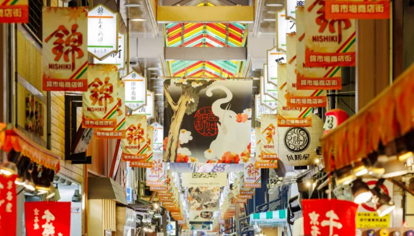 니시키 시장은 400년 역사를 자랑하는 교토의 주방으로 불리는 시장으로 좁은 골목에 약 130여개의 상점들이 영업 중입니다. 니시키 시장은 큰 시장으로 오사카의 쿠로몬 시장과 또 다른 매력을 갖고 있는 시장입니다.