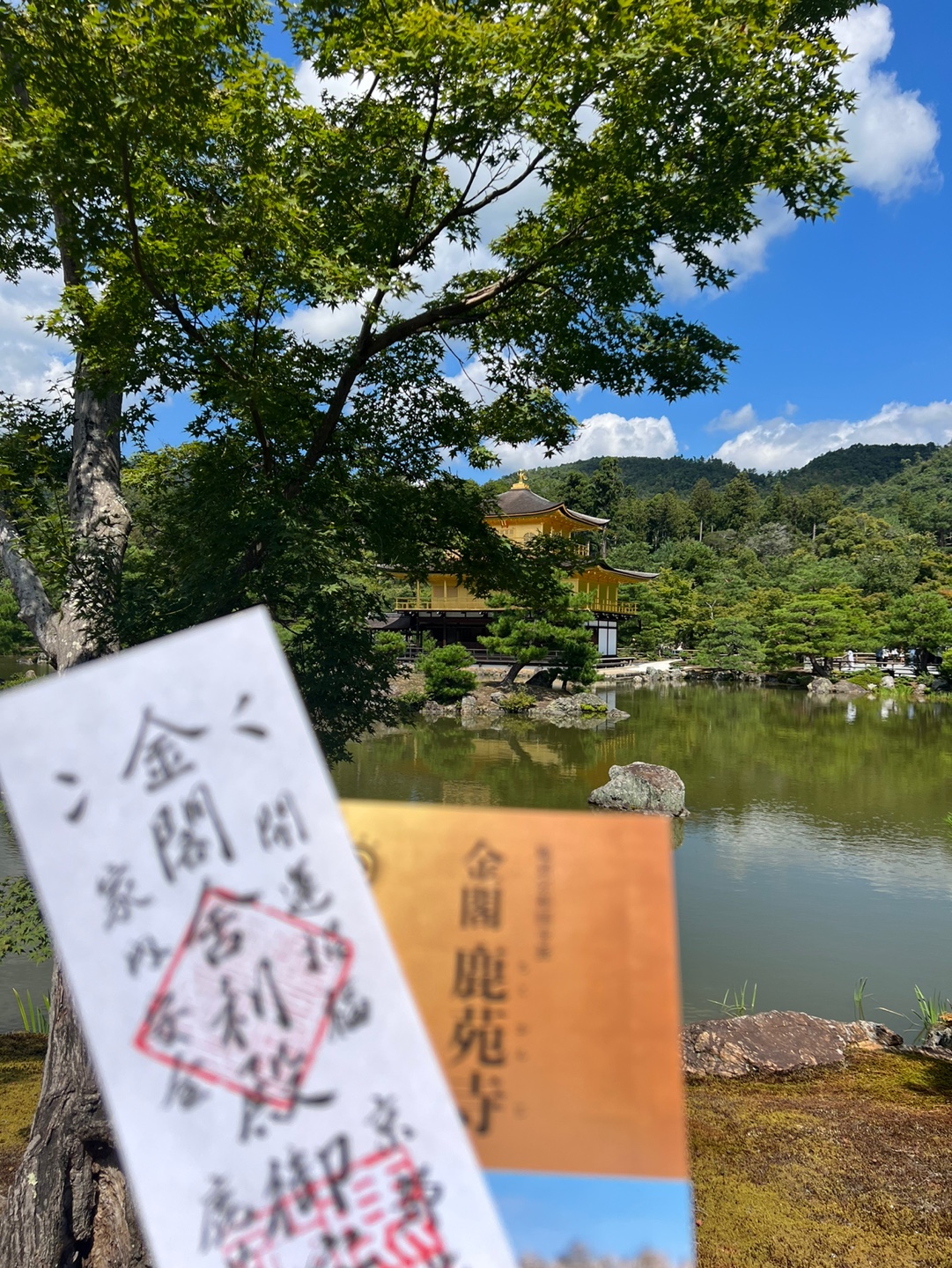 금각사는 금으로 칠해져 있는 절로 유명한 곳입니다. 사실 현재 보고 있는 절은 화재로 인하여 1950년도에 새로 지어진 금각사로 3번에 걸쳐 금박을 발랐는데 너무 과도하게 발랐다는 비판이 있습니다. 하지만 금박을 화려하게 칠한 덕분에 현재의 금각사는 교토에서 필수 관광지가 되었습니다.
