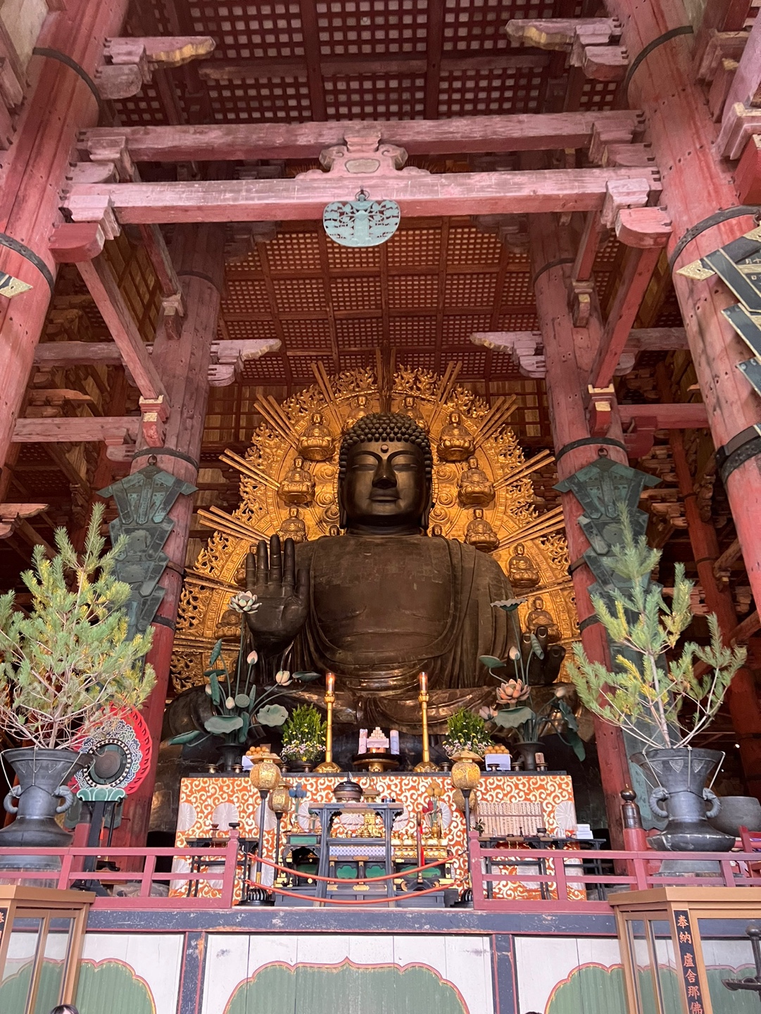 동대사는 세계 최대 규모의 불상이며 불안한 정국에 질병, 기근, 전란으로 부처의 힘을 빌려 이 상황을 극복해 보고자 이 불상을 세웠다고 합니다. 동대사는 목조건물로 크고 웅장한 느낌이었습니다. 동대사의 부처의 손 모양은 두려워하지말고 소원을 말해보라는 의미를 갖고 있다고 합니다. 동대사 입구에는 금강역사 조각상도 있고 많은 인상에 남았던 장소입니다.